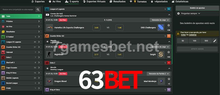 O 63bet oferece uma grande seleção de opções de apostas em e-sports com probabilidades competitivas